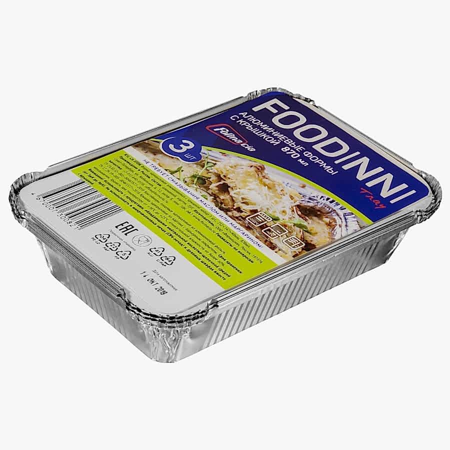 Комплект из трех одноразовых алюминиевых форм R1L с картонно-алюминиевыми крышками. Комплект предназначен, в первую очередь, для домашнего использования.