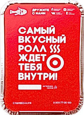 Крышка надежно защипывается в борт Пинап исключая возможность открытия при транспортировке. Внутренний слой крышки покрыт фольгированным слоем, благодаря которому она не пропускает даже самые жирные соусы.